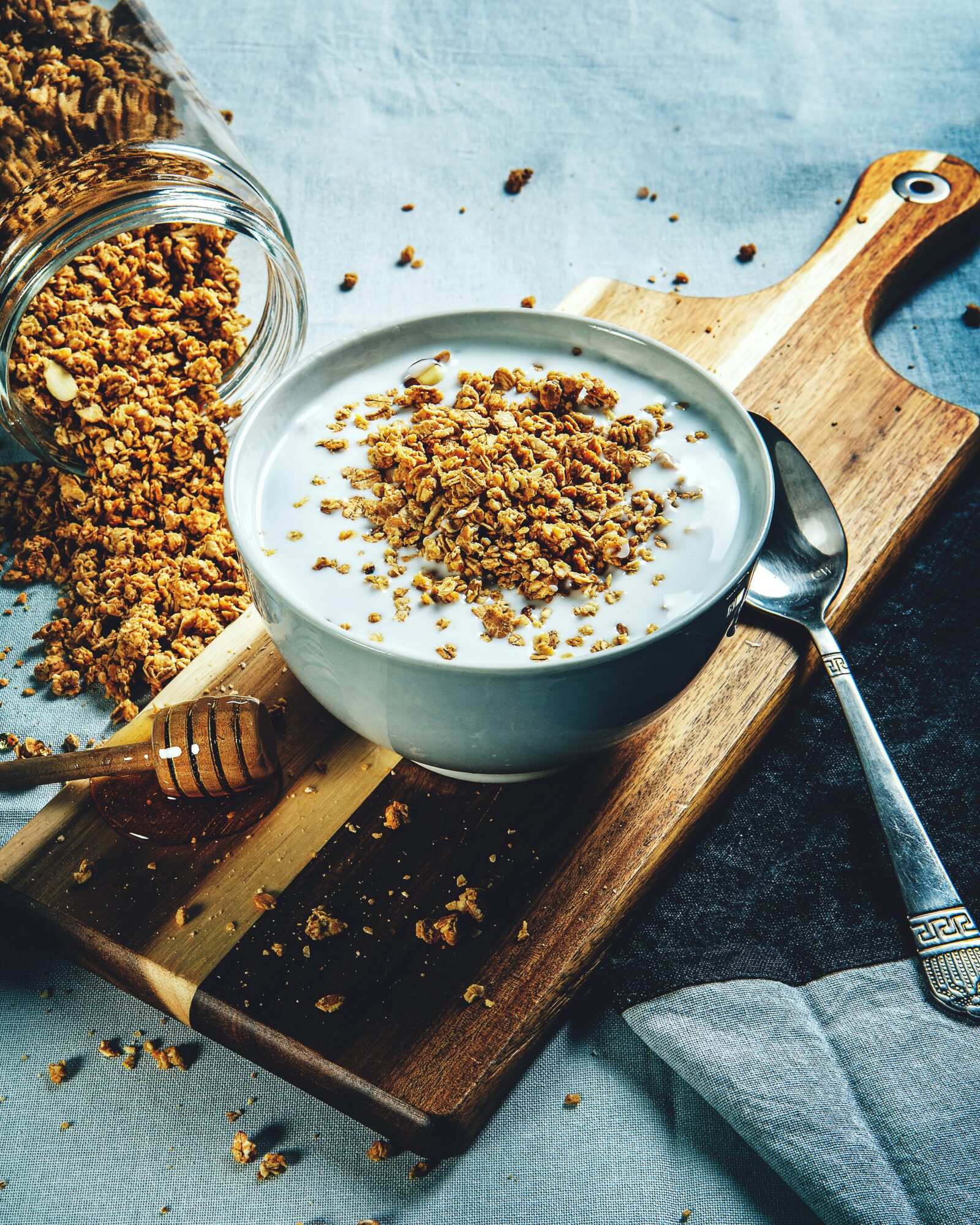 Frokostfavoritten? Kornblanding med gresk yoghurt og vår egen honning – men i helgene er det en skikkelig norsk frokost med ost, skinke, sild og alt som hører til.