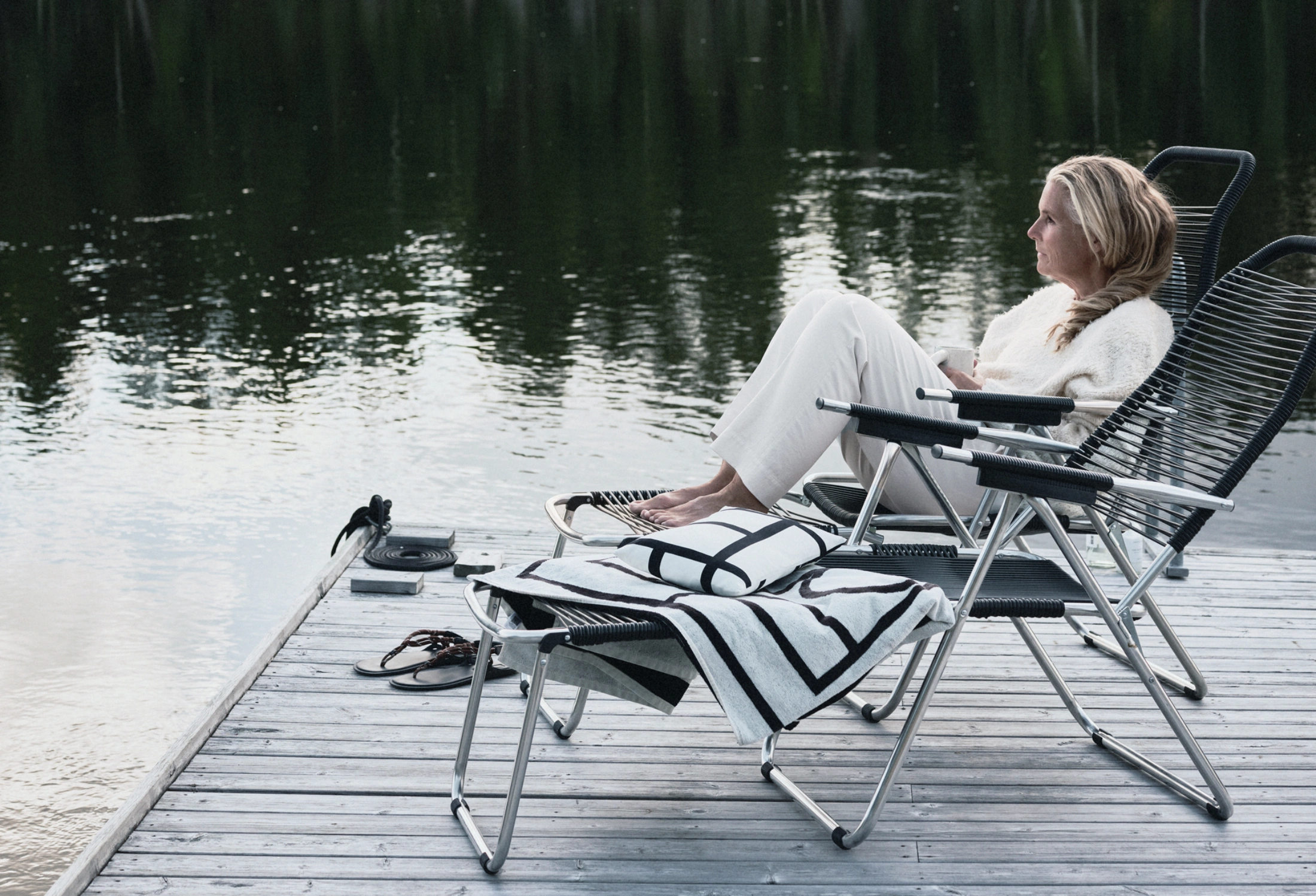 Piteälven og den nordlandske naturen har en rogivende stemning som harmonerer med interiørstilen som kjennetegner Lotta Agatons arbeider. Bryggen nede ved elven er et sted for filosofering og friske bad – i det hele tatt er landstedet et godt sted å trekke pusten mellom alle prosjektene som fyller hennes hverdag. For tiden er Lotta aktuell med kolleksjoner for blant annet hennes eget merke L.A. Objects.