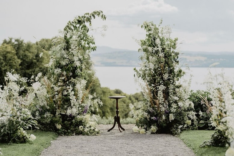 BIldeskjønn ramme: Benedictes blomsterarrangement er organiske, poetiske og høyst personlige. Her er alt gjort klart for en vielse i hagen til Hoel gård på Nes.