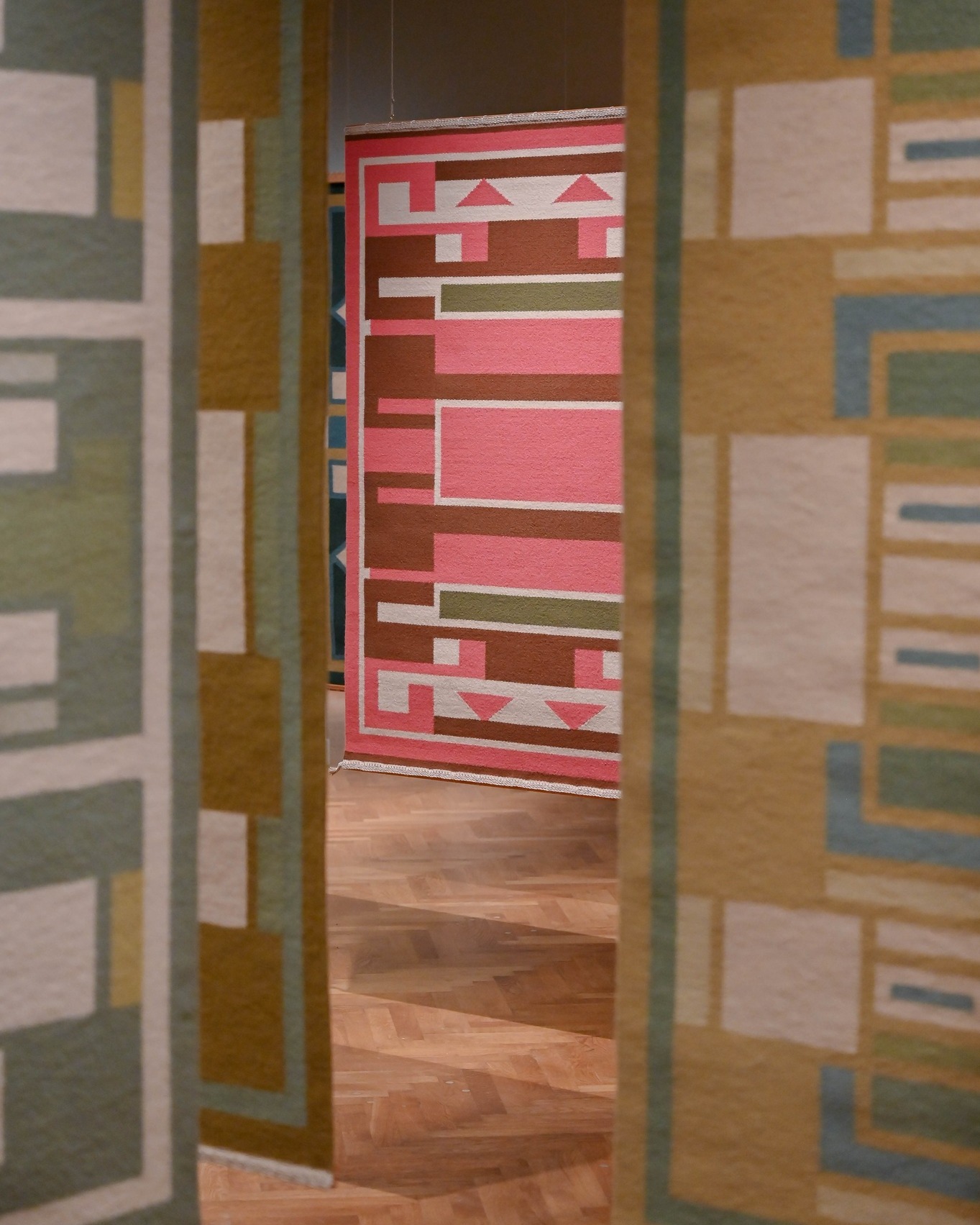 Vi har veldig lyst til å dra til København og se de store, abstrakte billedvevene til den danske kunstneren Anna Thommesen i utstillingen Vævninger ved Statens Museum for Kunst .