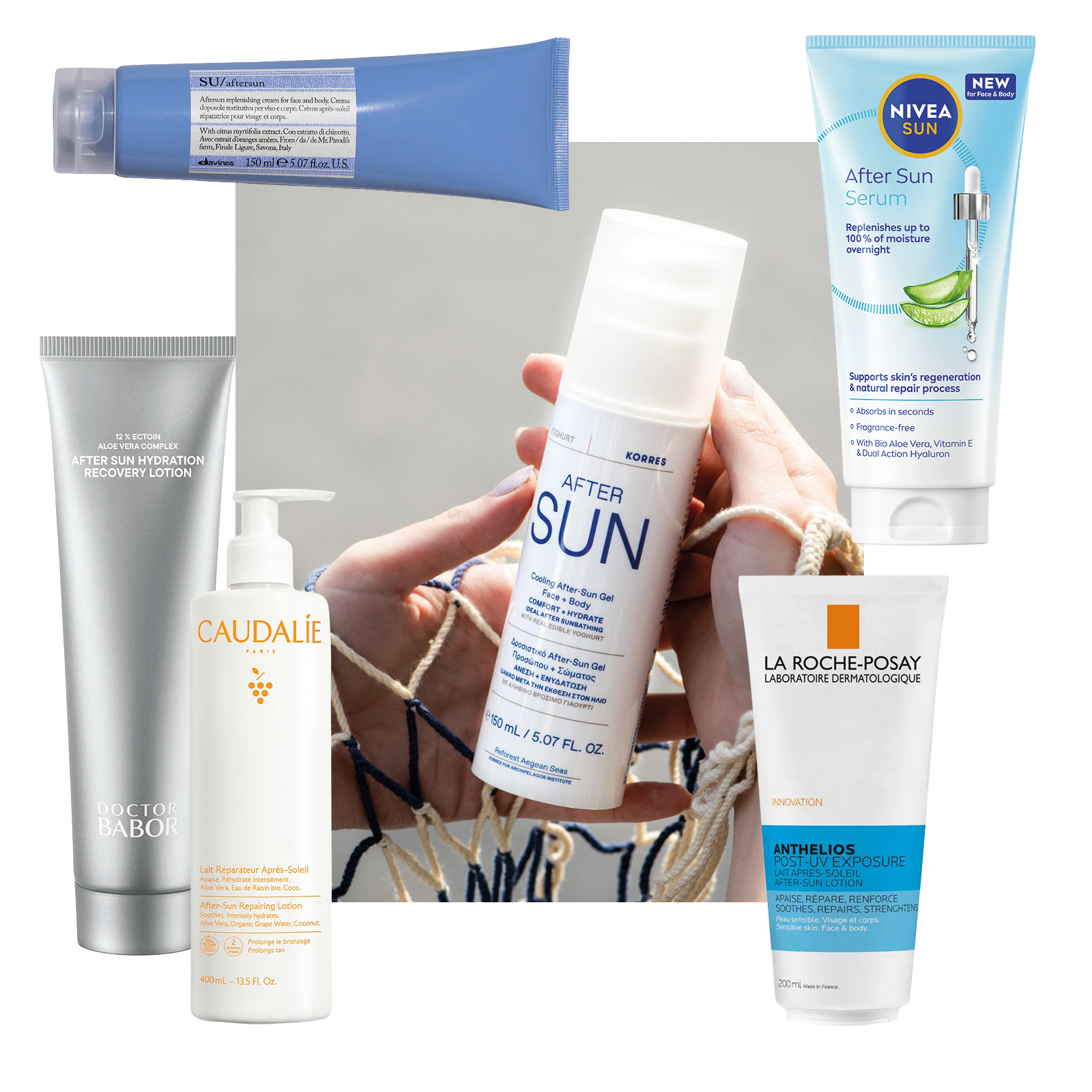 Etter sol: Davines SU Aftersun, kr 359, er en kjølende og pleiende gel-krem som frisker opp og gir lindring til hud som har blitt solbrent. Nivea After Sun Serum er et lett serum for ansikt og kropp som gjenoppbygger fuktighet over natten, og støtter den naturlige reparasjonsprosessen til solstresset hud. Doktor Babor After sun hydration recovery lotion, kr 499, er en beroligende aftersun som tilfører fukt og bidrar til å forebygge tidlig hudaldring. After-Sun Repairing Lotion fra Caudalie med ingredienser som aloe vera og kokosolje fukter, reparerer og lindrer. Passer alle hudtyper, ca kr 280. Korres After Sun, kr 299, er en kjølende og fuktighetsgivende gele som inneholder ekte gresk yoghurt og fennikkelekstrakt. La Roche-Posay After Sun Lotion, kr 169, er en beroligende, kjølende og fukgivende aftersun-lotion til sensitiv og soleksponert hud, velegnet for ansikt og kropp.