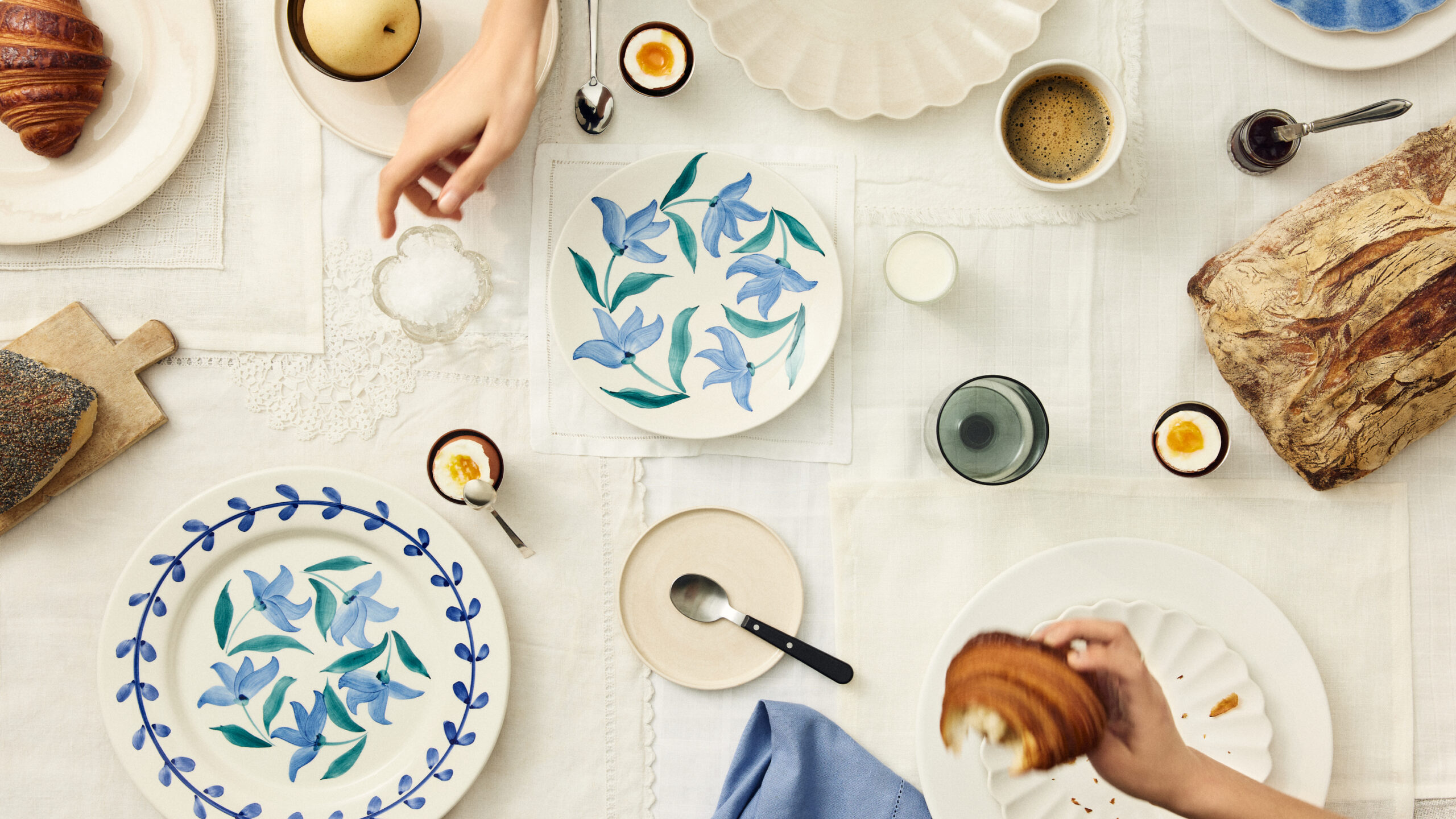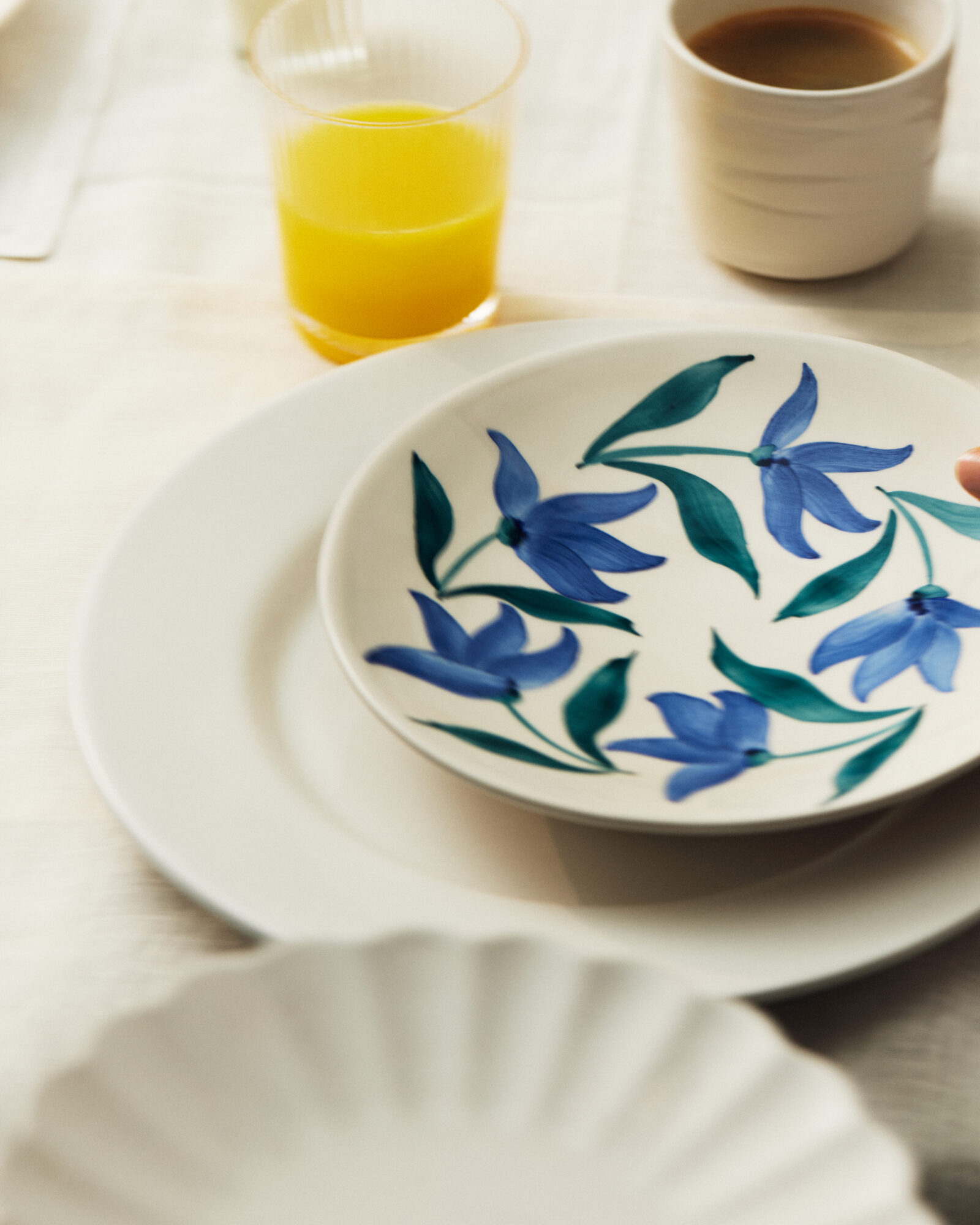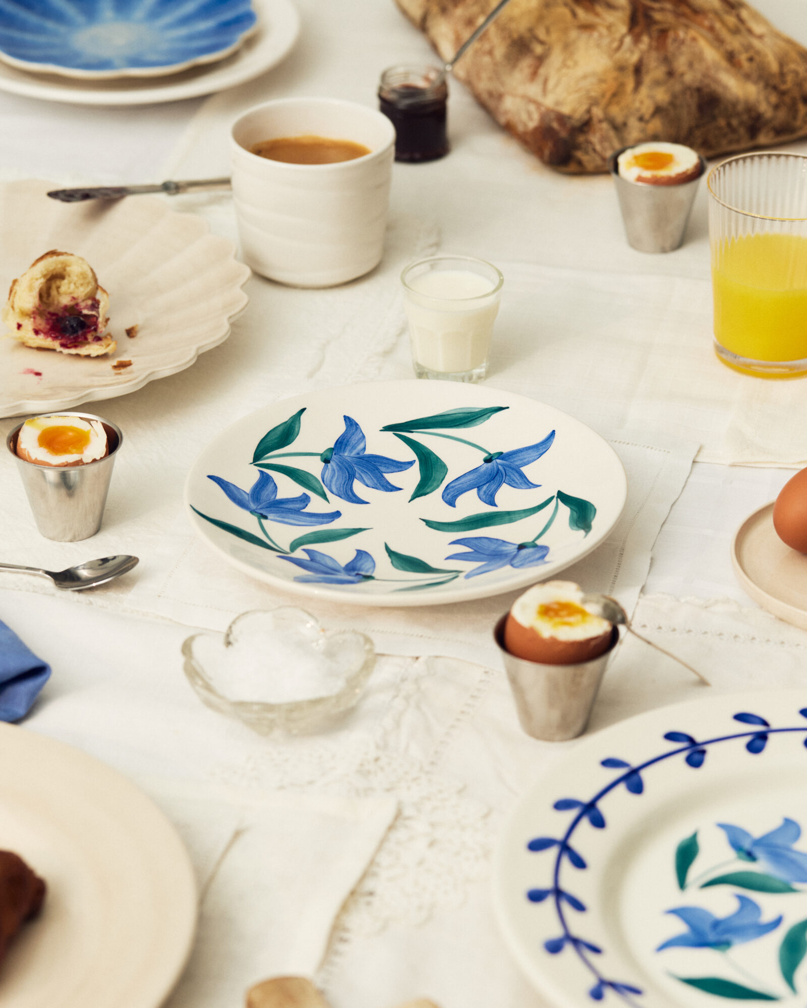 Blomstrende bord: Det svensk-portugisiske merket Mateus er kanskje aller best kjent for sine mange vakre ensfargede serviser, som kan mikses og matches av hjertens lyst. Nå har de begynt å dyppe tåen litt ned i mønster, som også fint kan blandes med de allerede eksisterende servisene. Flowers-kolleksjonen er utviklet i samarbeid med designeren Sam Baron, kjent for sitt arbeid med Dior Maison. Flowers Blossom asjett, Ø 20 cm, kr 495.