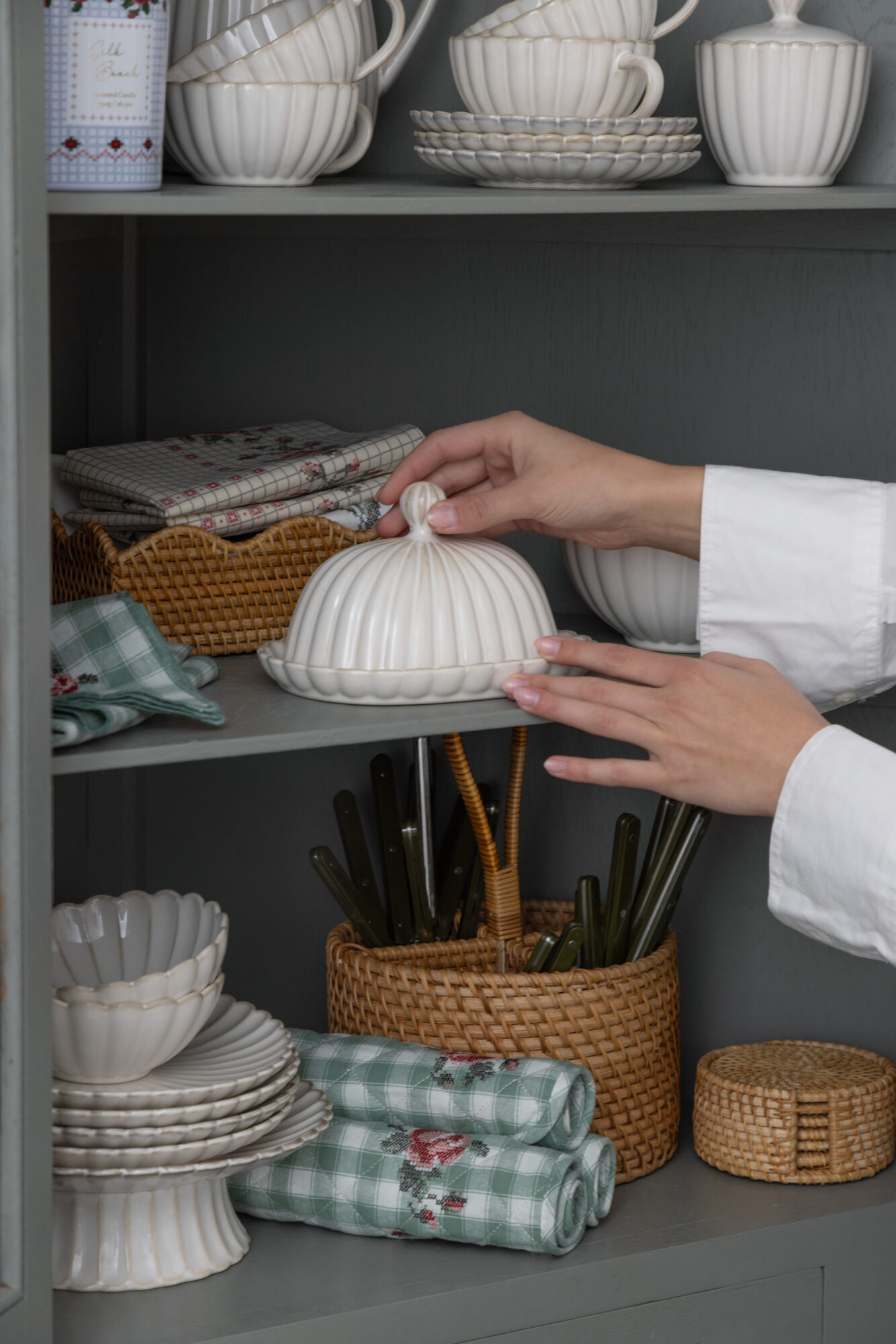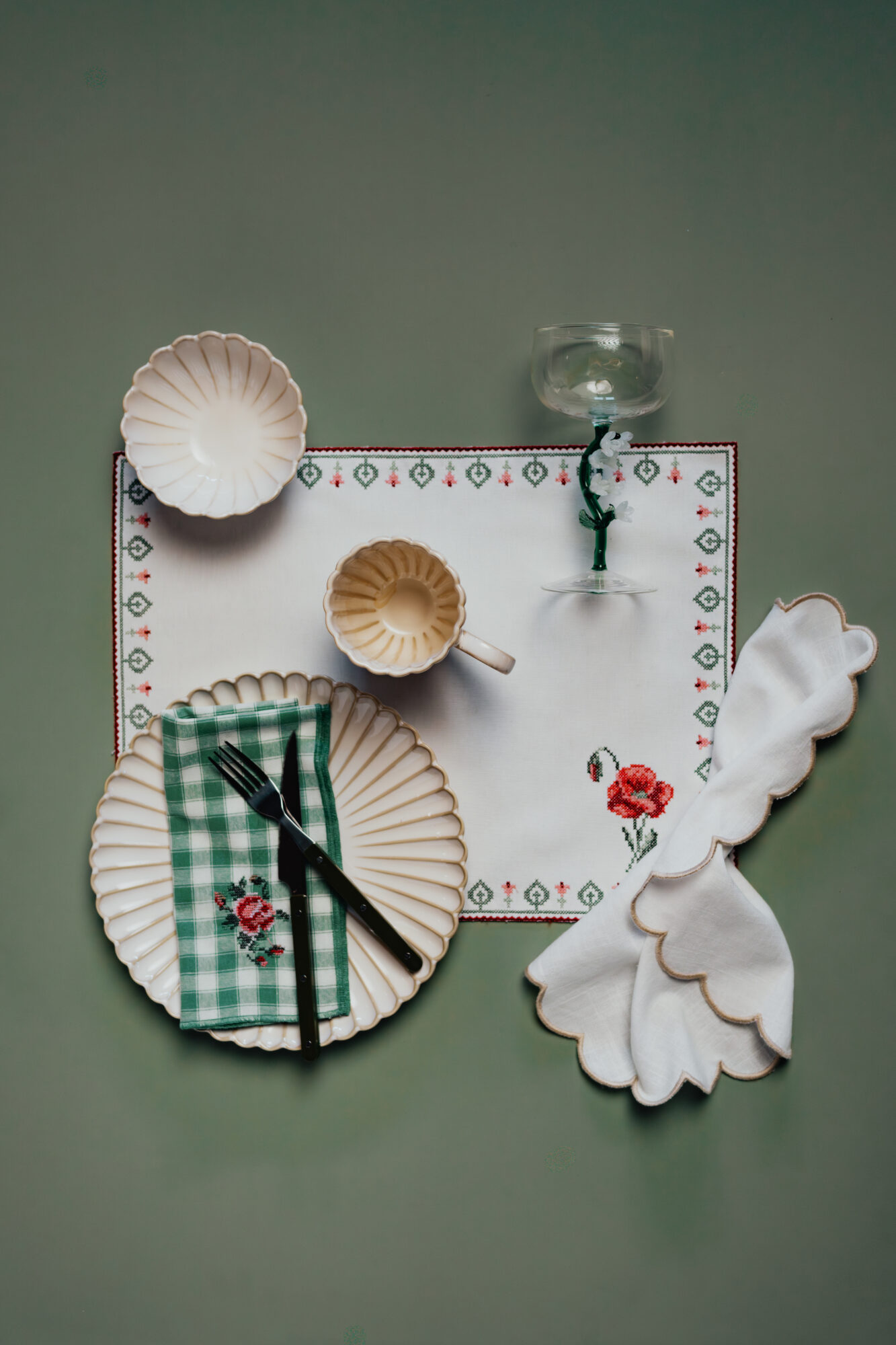 Ny nostalgi: Kid har virkelig omfavnet den nostalgiske bestemorstrenden med sin nye serviseserie Rose, med tilhørende nostalgiske bordbrikker og tøyservietter i ulike varianter. Tøyserviett Adea 2-pk, kr 199,90, smørfat Rose, kr 249,90, stettefat Rose, kr 349,90.