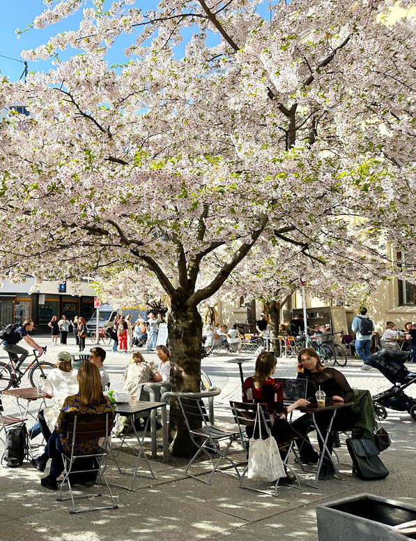 VÅRSTEMNING: Mot slutten av april er blomstrer frukttrærne, som kirsebærtrærne på St. Olavs plass i Oslo. Om du ikke allerede har tatt din første lunsj, pils eller is utendørs, er dette ditt stikkord for at det er på høy tid å innlede utelivet. Nyt sesongen som er full av forventning og glede, og lar deg flashe de nye, kule solbrillene dine. Hvis du bor i Oslo, kan du finne ditt nærmeste kirsebærtre takket være Oslo kommunes kart over kirsebærtrær – og ha din egen sakura-feiring. La deg inspirere til flere herlige vårlige aktiviteter hos Visit Norway og Visit Oslo.