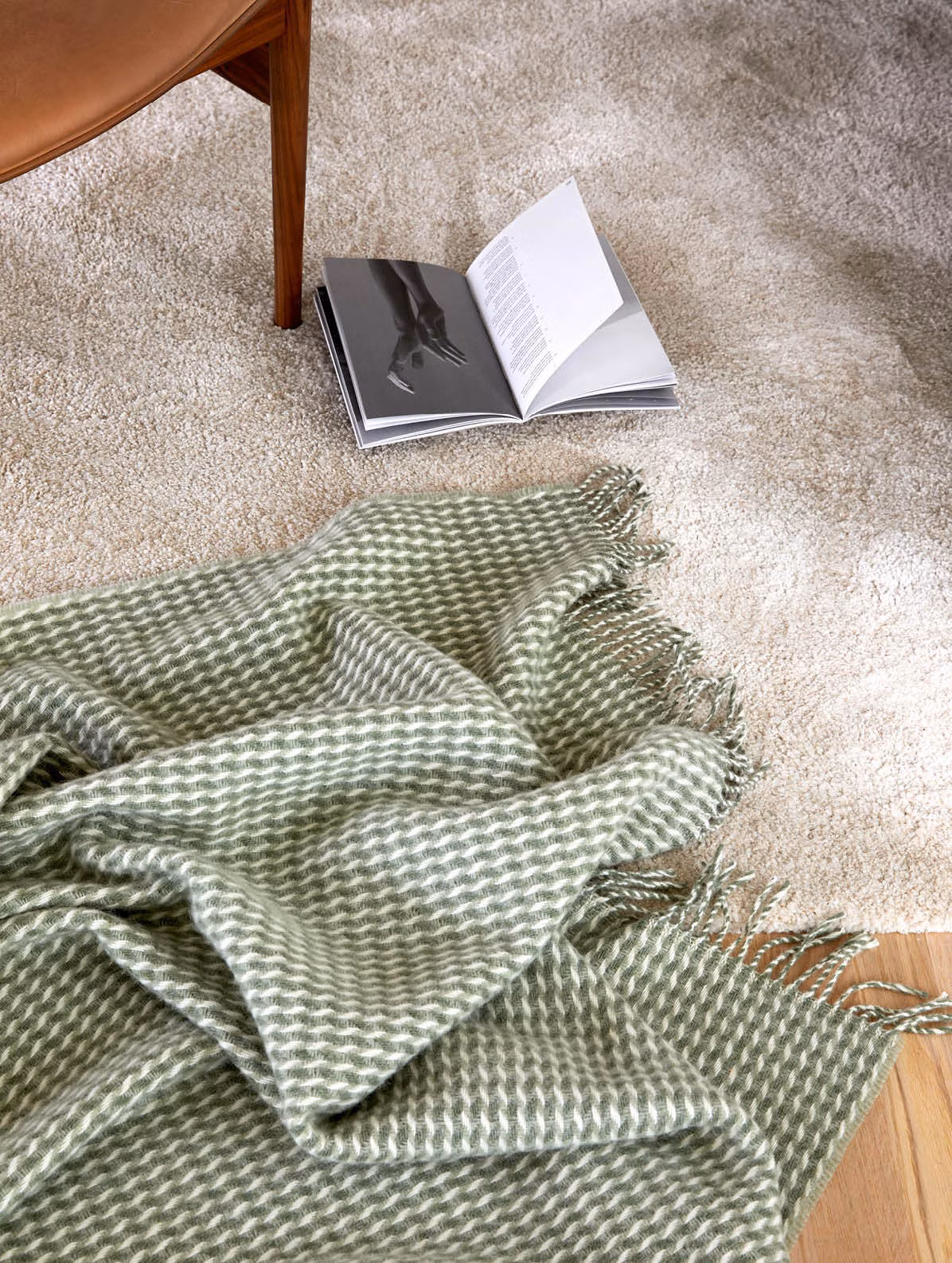 Lun lykke: Teide pledd i ren ull i fargen dempet grønn, 120 x 180 cm, kr 829, Høie. Hifi-himmelen: Argon Audio TT-4 MK2 platespiller i fargen valnøtt, b 42 x d 35,5 x h 14,2 cm, kr 9998, hifiklubben.no.