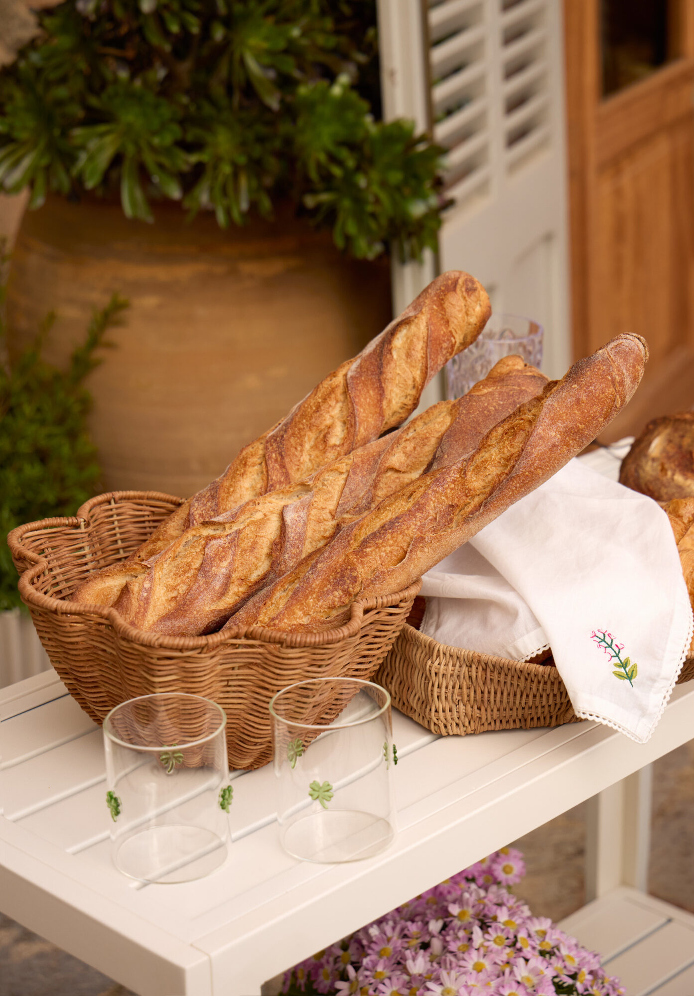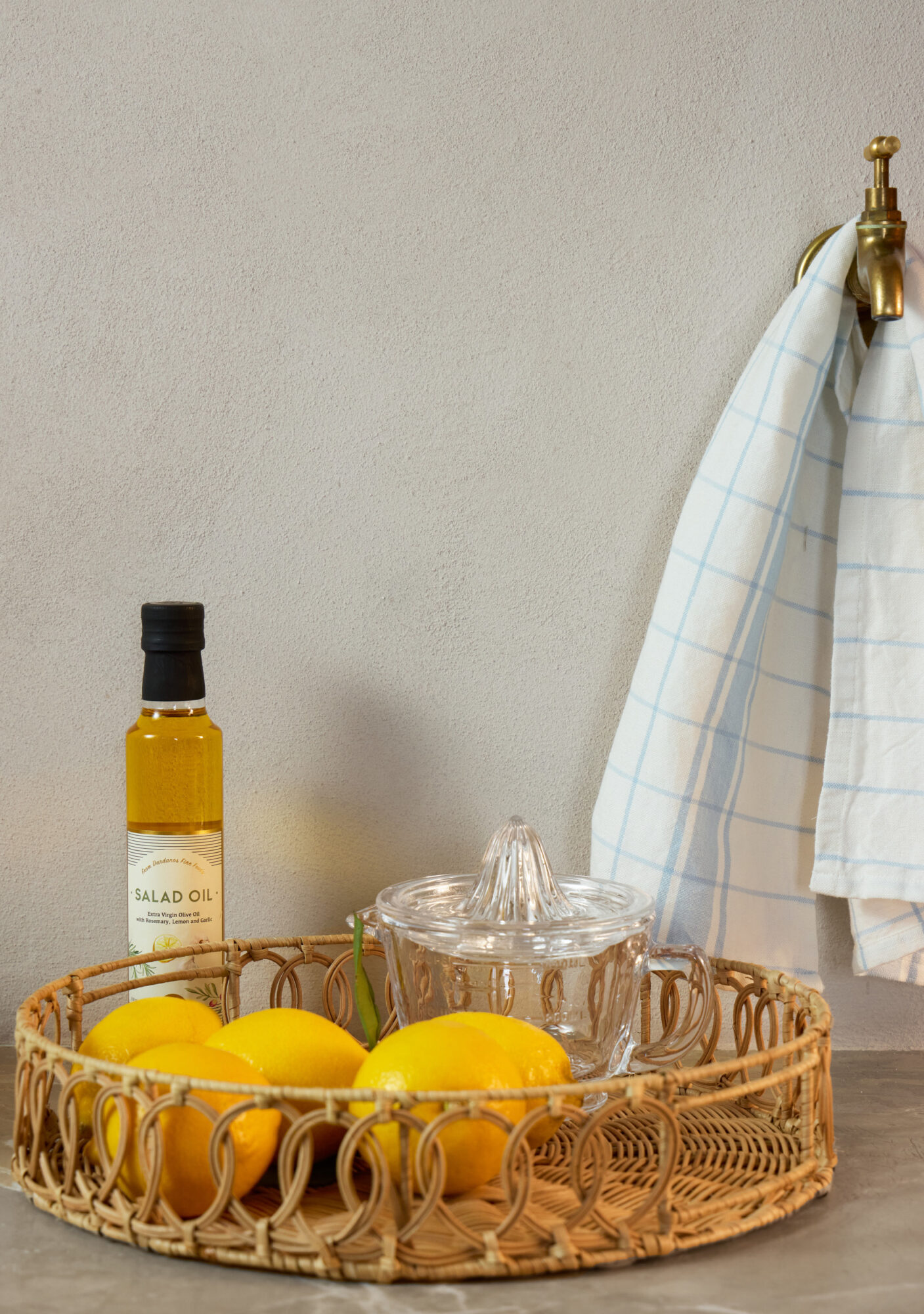 Til serveringen: Serena brett i rotting, Ø 30 cm, kr 499, og Cres håndlaget skål, Ø 30 cm, kr 299, Kid Interiør.