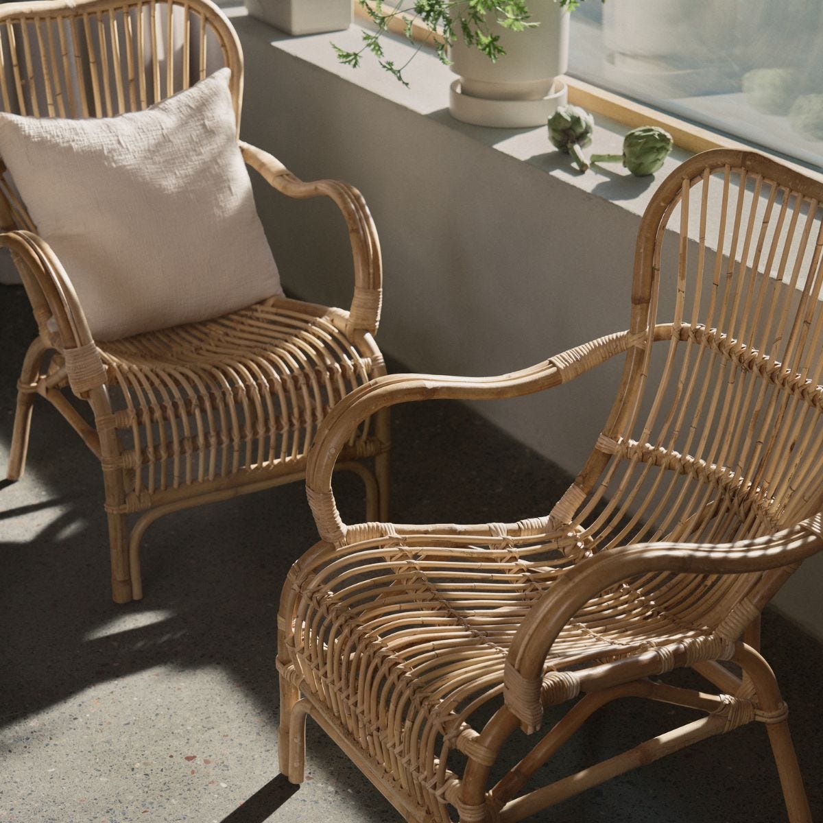 Tilfør hjemmet eller uteplassen et hint av natur og retro-romantisk sjarm med møbler og interiørdetaljer i rotting.