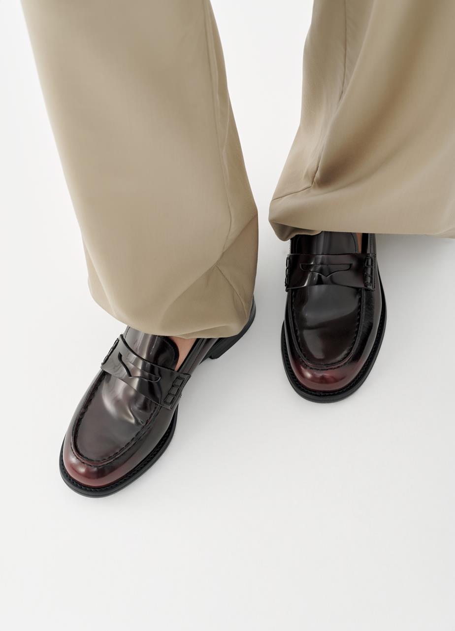 Speilblank: Klassisk i blankpolert rødt skinn. Linn loafer, kr 1799, fra Vagabond.