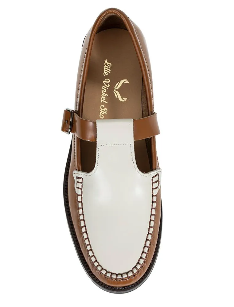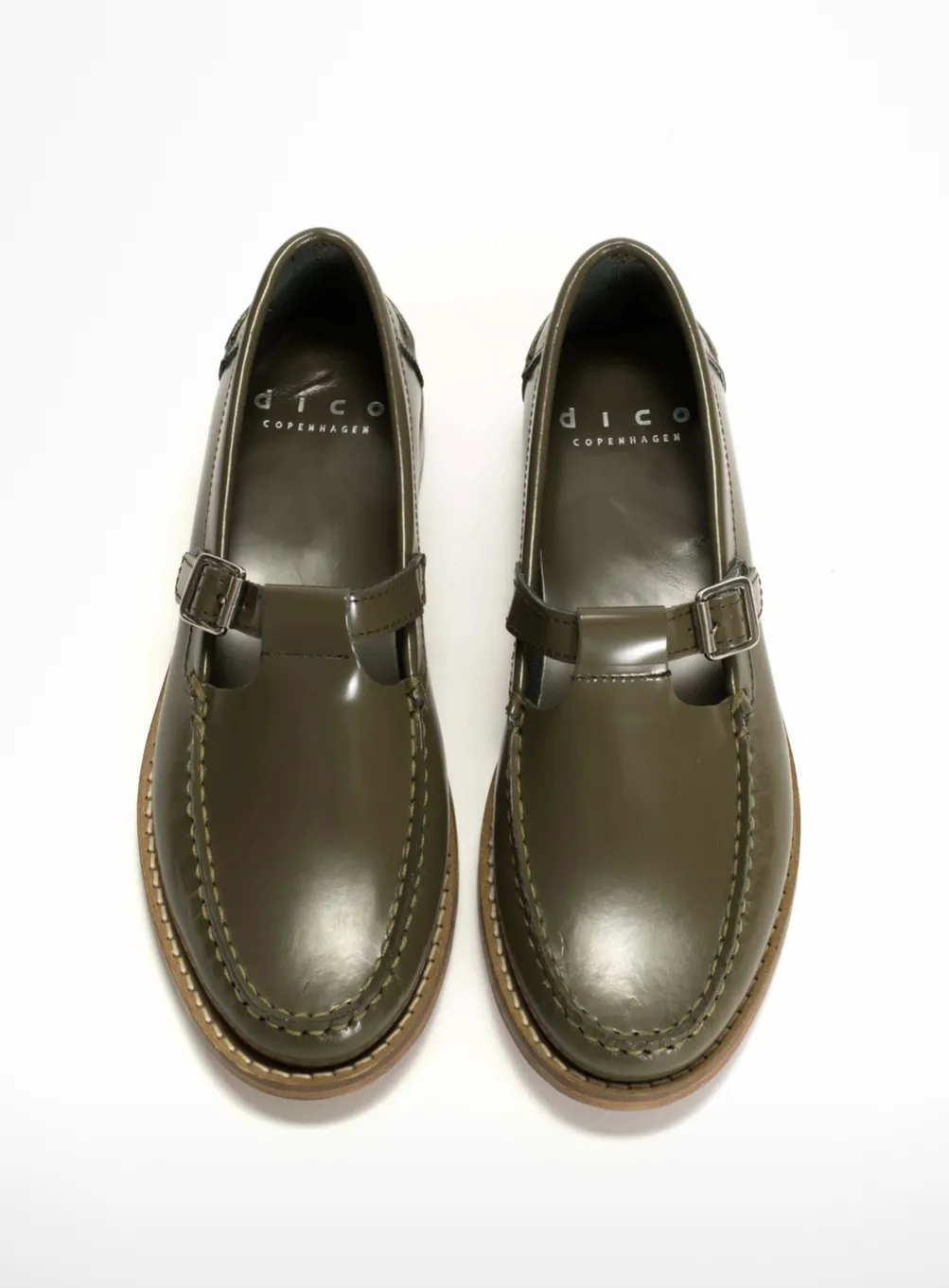 Mary Jane loafers: Disse to variantene har hentet inspirasjon fra såkalte Mary Jane sko med spennelukking i siden. Dico loafer t-bar, ca kr 3450, fra Anonymus Copenhagen i olivengrønt skinn er behandlet slik at de skal tåle allslags vær. Finnes i flere farger. Tofarget variant med forseggjort håndsøm fra Lille Vinkel sin nye loaferserie laget i Spania, kr 1995.