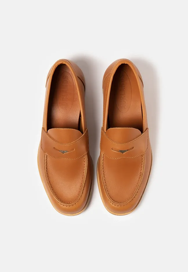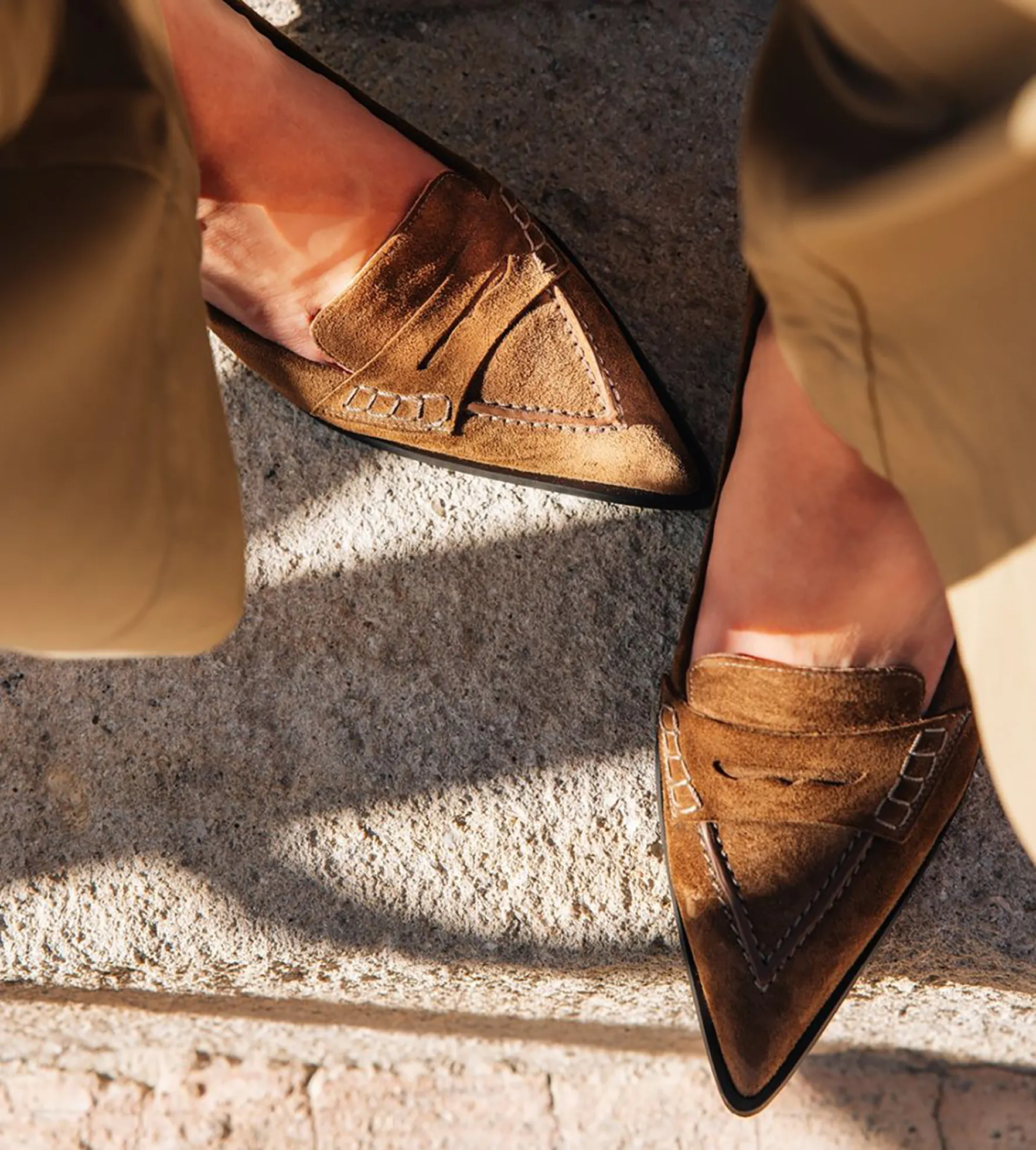 Tåspiss-sko: Cognacfargede loafers i semsket skinn, ca kr 2492, fra Billi Bi.