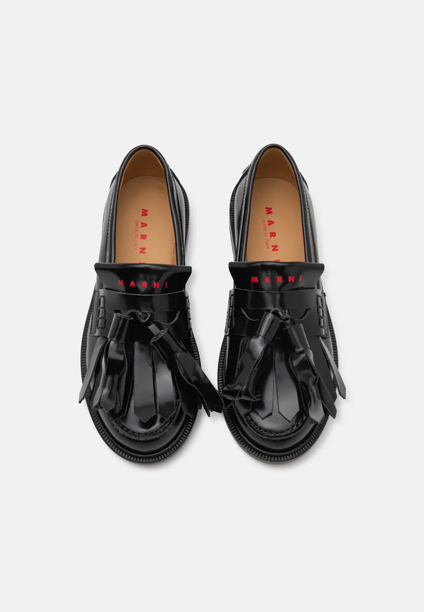 Med hjartet på rette staden: Elegante og klassiske loafers som kan gi hvem som helst hjertebank. Weejuns Penny Love Loafers i sort og rødt skinn, ca kr 2326. Finnes også med gull- og sølvhjerter, fra G.H.Bass. Vi kan gjerne ønske oss disse kule, blanke loafersene med overdimensjonerte dusker og frynser fra Marni, kr 3345 hos Zalando.