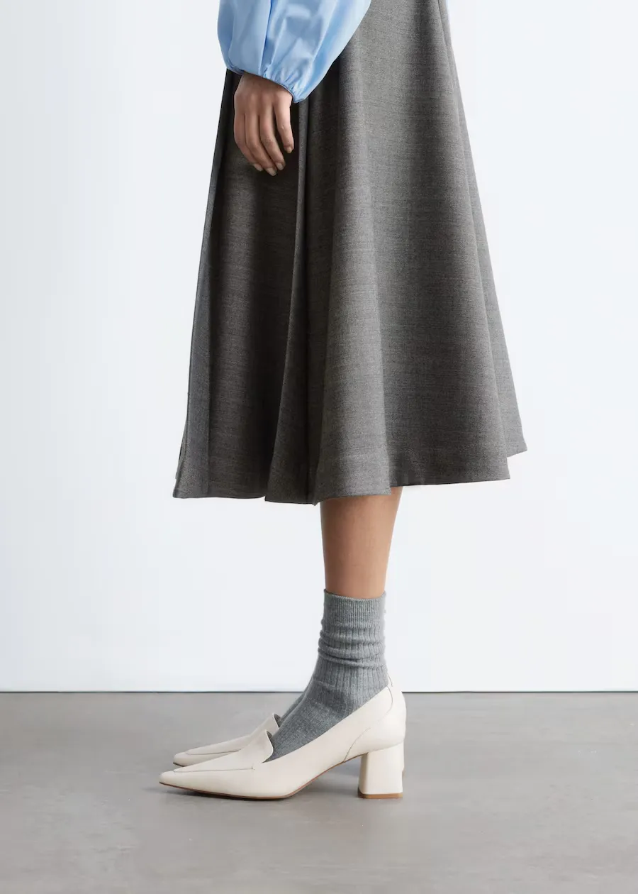 Loafer pumps: Hva får du om du slår sammen pumps og loafers? Jo, et par avslappede og elegante sko. Finnes også i sort. Leather loafer pumps, kr 1690, fra & Other Stories.