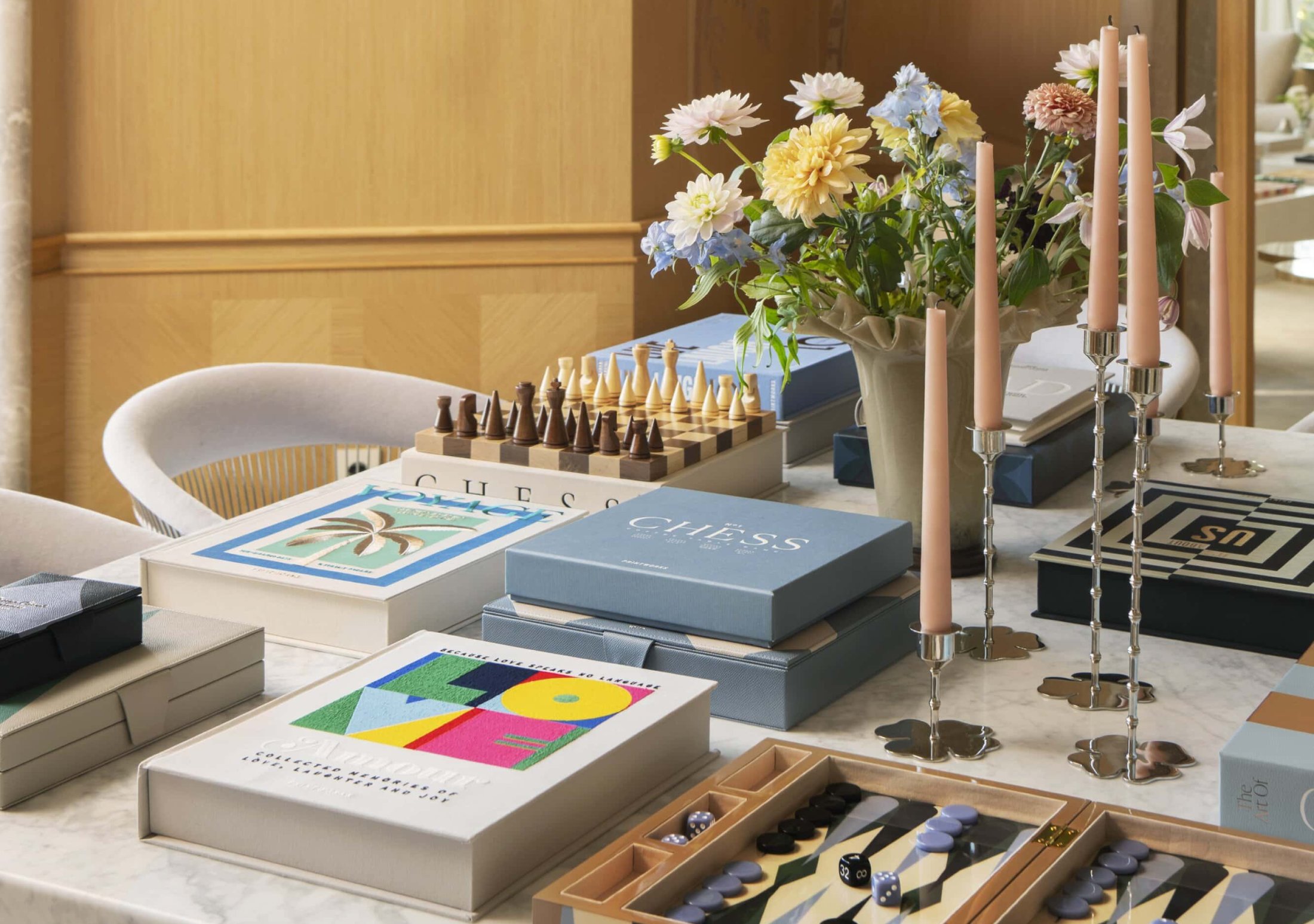 Forgyllen hverdagen: Vi slår et slag for å la spillene stå fremme, både fordi det blir kortere vei fra tanke til handling og fordi de pynter opp, sjakkbrett fra Printworks, kr 695. Viste du at Svenskt Tenn har skapt et eget kortspill kalt Spader Häst, inspirert av grunnleggere Estrid Ericson? Kortstokken kommer med en dekorativ holder i tinn, ca. kr 2000.