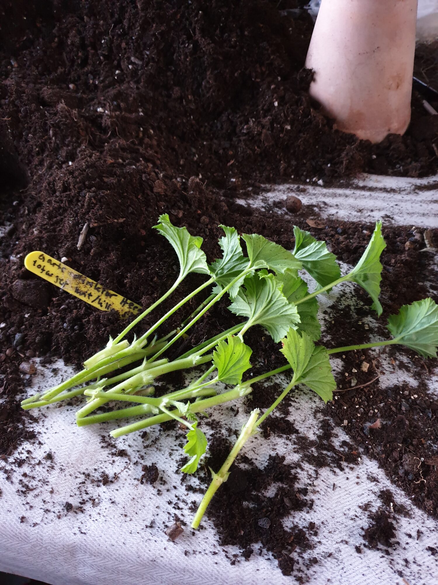 For pelargonia: behold kun det øverste bladet – bladene vokser enkeltvis, ikke parvis.