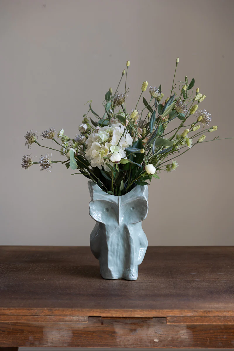 Skulpturell: Owl After Midnight vase i stentøy, designet av det italienske motehuset Marni, i fargen lyseblå, str. L/h 30 cm, kr 1890, bolina.no.