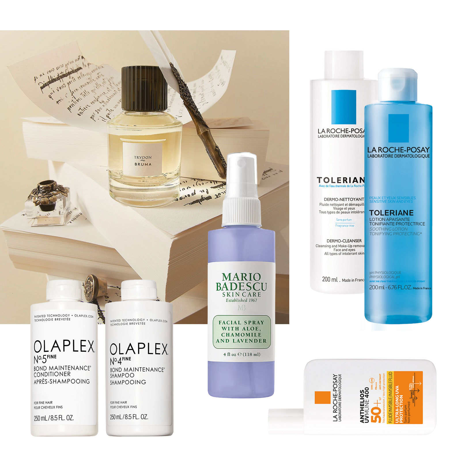 Jeg har aldri vært så veldig opptatt av håret mitt – det er nordisk lett og rett, og umulig å style med produkter – så en god sjampo og balsam er der jeg legger pengene. Da er Olaplex No 4 ogNo 5 Fine Hair Bond Maintenance helt supre, de gir håret volum selv uten føning, og holder det blankt og mykt. Mario Badescu ansiktsspray er en quick-fix for å gi humøret en liten oppsving. Et par sprayer over ansiktet – ikke tett på, bare slik at det føles som lett yr – herlig! Jeg liker best den med kamille og lavendel.